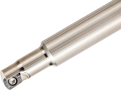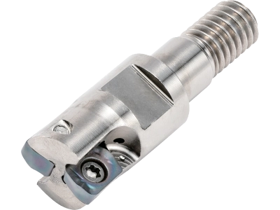 90° modular-type milling cutter with convex and high precision G-class inserts for high feed milling of small parts in small machining centres, a replacement for solid endmills.
