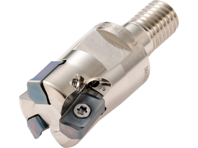90° modular-type milling cutter with 4-edge convex inserts for high feed milling even in small machining centres.