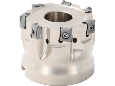 90° arbor-type milling cutter with 4-edge tangential inserts for multifunctional machining such as 3D milling.